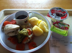 Nog maar net bekomen van de gesprekjes en onderzoekjes staat het eten al klaar. Het ziet er goed uit en het smaakte heerlijk.