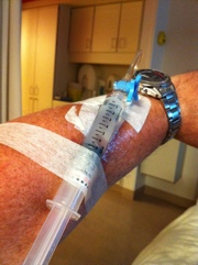 De operatie zit erop en is geslaagd. Het was overigens een hele toer om mij onder narcose te krijgen. Ik heb eerst een ruggeprik gehad, maar dat werkte niet goed. Ik voelde pijn in mijn bovenbeen. De narcotiseur had dit nog nooit eerder meegemaakt en heeft overleg gevoerd met een specialist op dit gebied. Uiteindelijk is besloten om onder gehele narcose te gaan. Ik moet van de arts nog horen wat hij heeft aangetroffen. Wel bleek dat de slijtage volop aanwezig was. Het gaat nu prima en voel mij goed. Tot nu toe nog geen bijwerkingen. Ik ben ontzettend blij dat ik nu een kunstheup heb. De revalidatie kan beginnen….Infuus